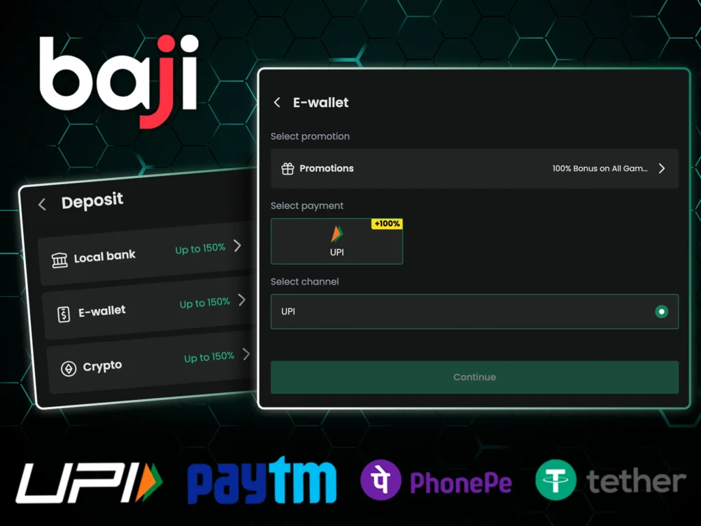 On Baji users will find various popular payment methods for deposits and withdrawals, with availability of transactions in INR. The minimum deposit amount is only 500 INR and the following payment options can be used: